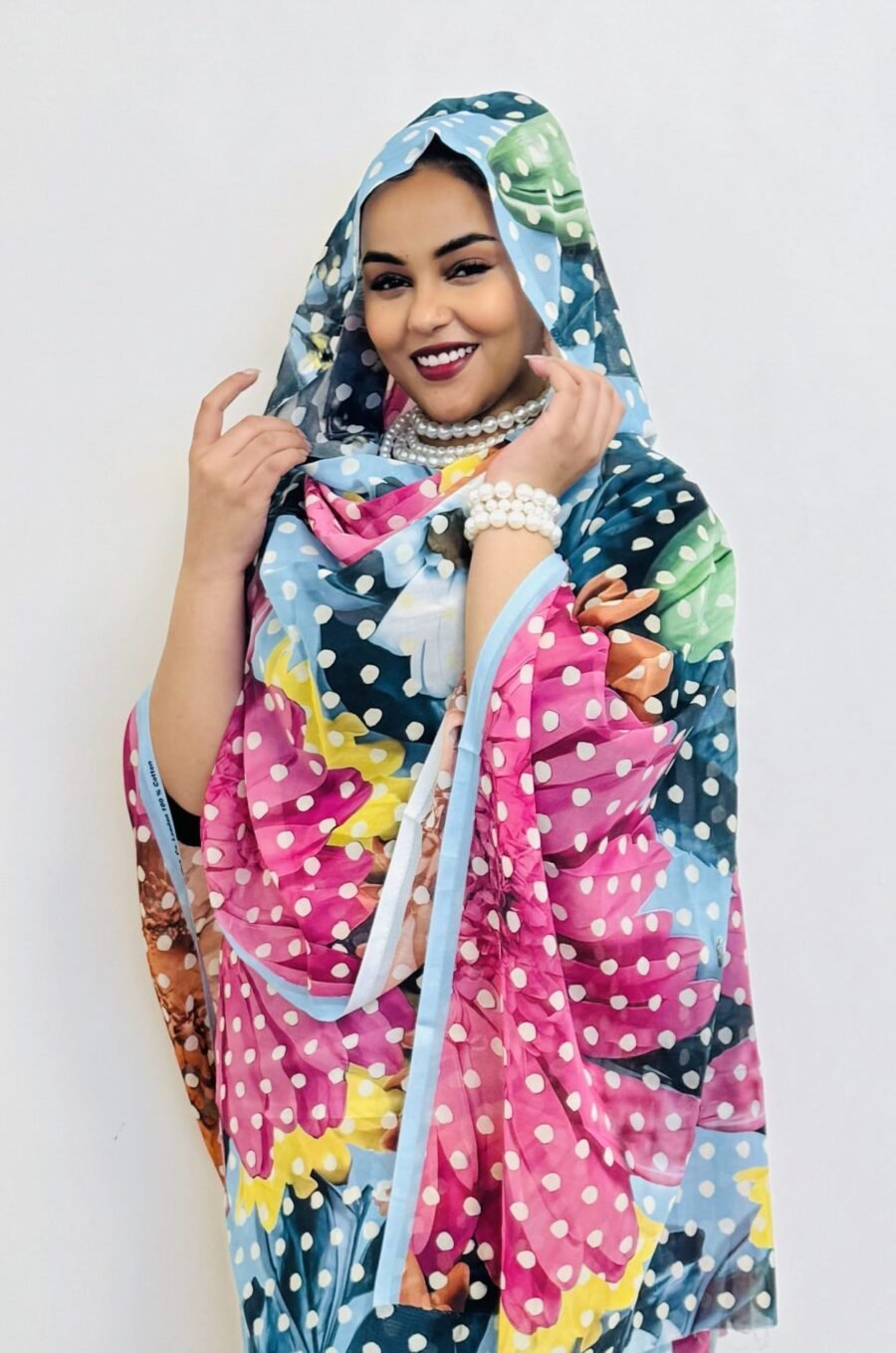 Blue Floral Full Width Swiss Voile. Width1.40 Cm, Weight 0.450 Grams, Hand Wash.