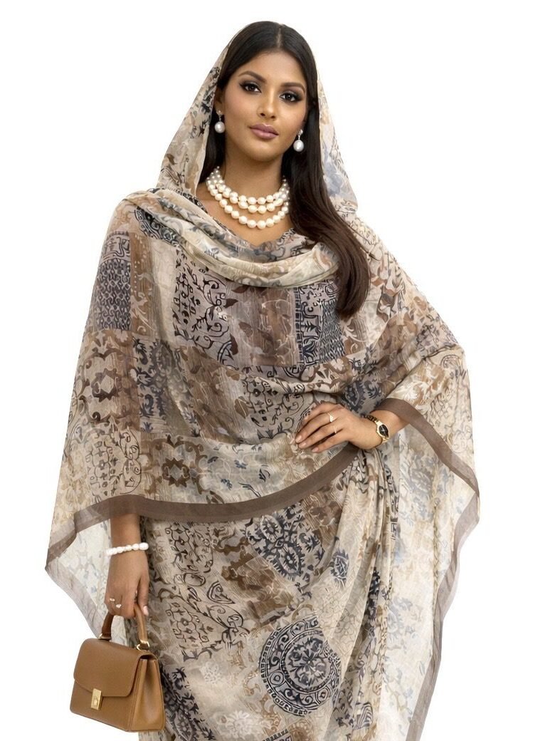 Beige Pattern Half Width Voile. Width1.15 Cm, Weight 0.450 Grams, Hand Wash.