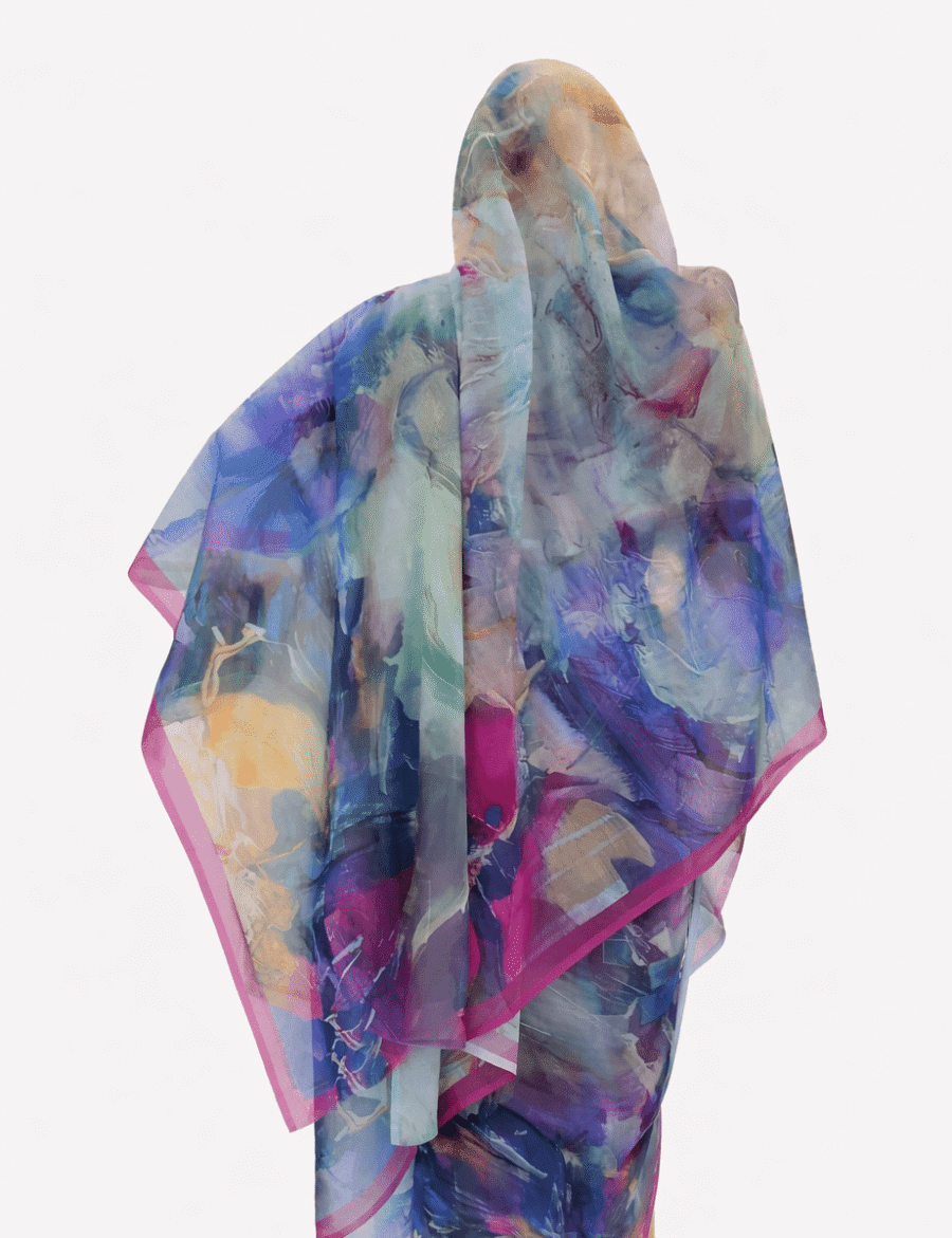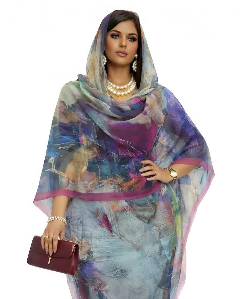 Blue Pattern Half Width Voile. Width1.15 Cm, Weight 0.450 Grams, Hand Wash.