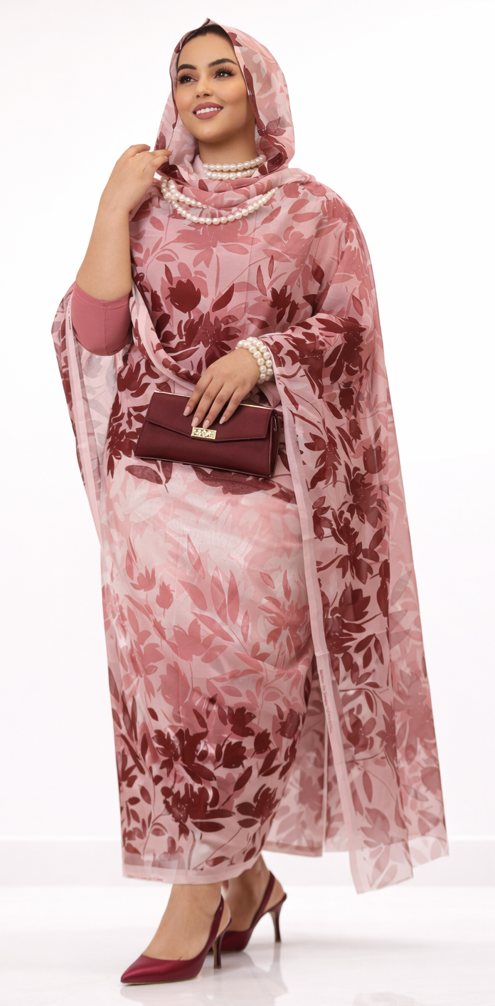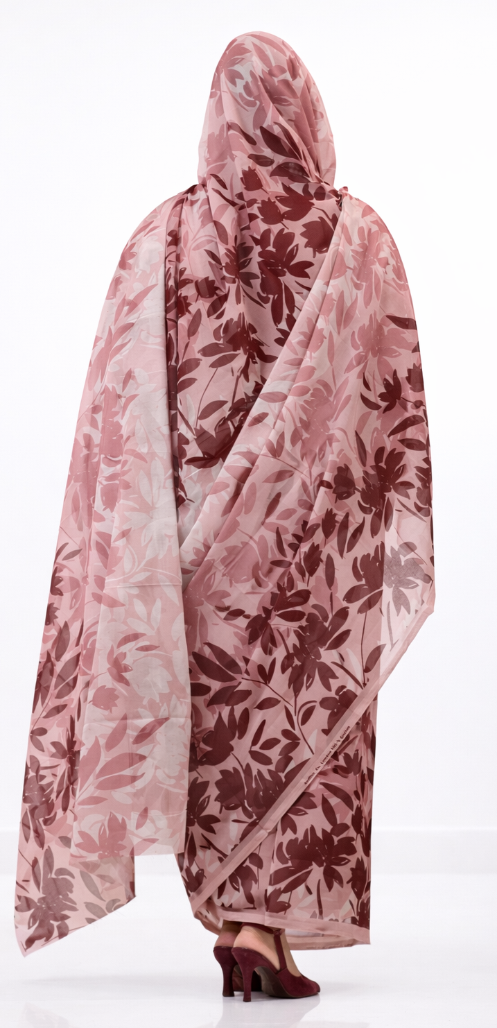 Light Pink/ Maroon Leaves Full Width Swiss Voile. Width1.40 Cm, Weight 0.450 Grams, Hand Wash.