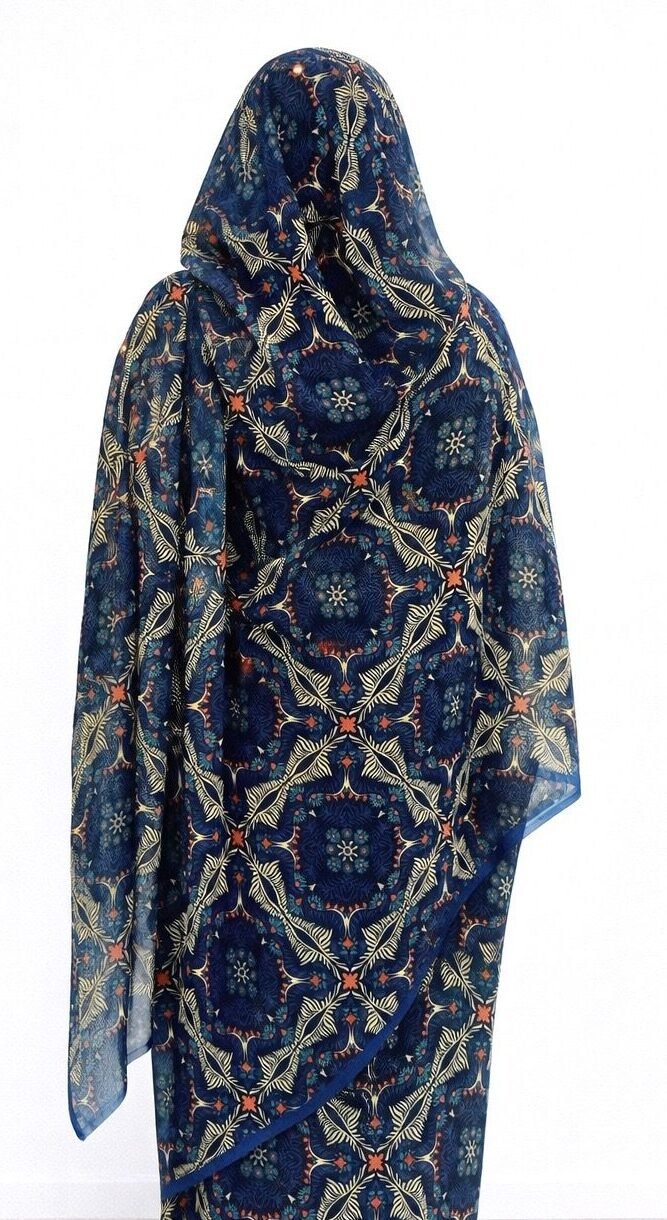 Navy Blue Floral Half Width Voile. Width1.15 Cm, Weight 0.450 Grams, Hand Wash.