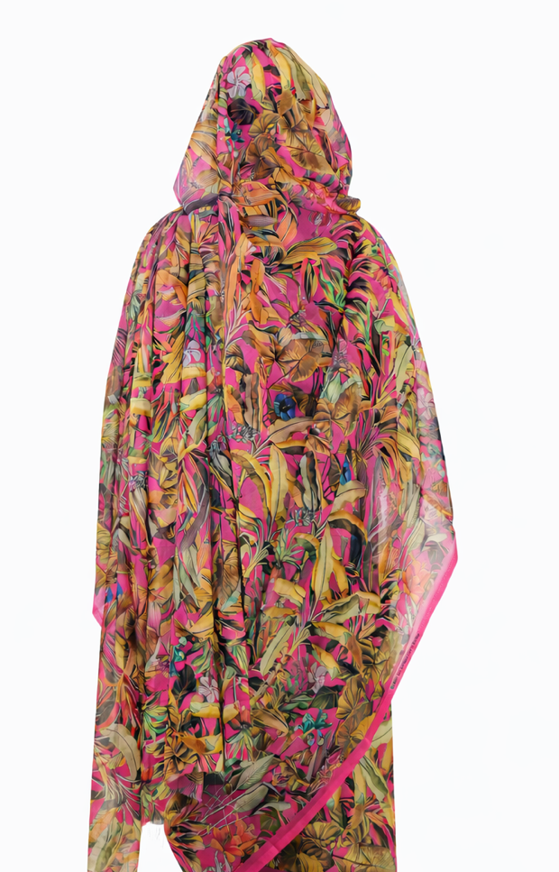 Pink Floral Full Width Voile. Width1.40 Cm, Weight 0.450 Grams, Hand Wash.