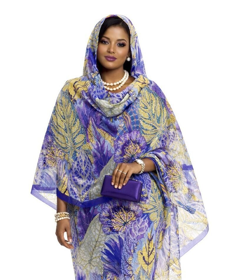 Purple Leaves Pattern Half Width Voile. Width1.15 Cm, Weight 0.450 Grams, Hand Wash.