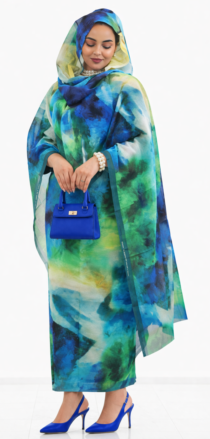 Turquoise/Blue Pattern Full Width Swiss Voile. Width1.40 Cm, Weight 0.450 Grams, Hand Wash.