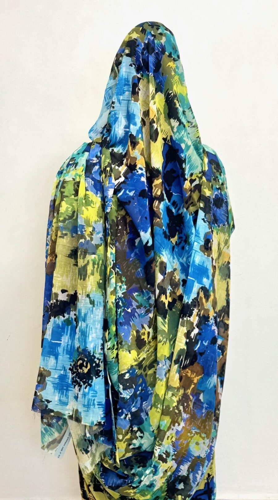 Yellow/Blue Pattern Full Width Swiss Voile. Width1.40 Cm, Weight 0.450 Grams, Hand Wash.